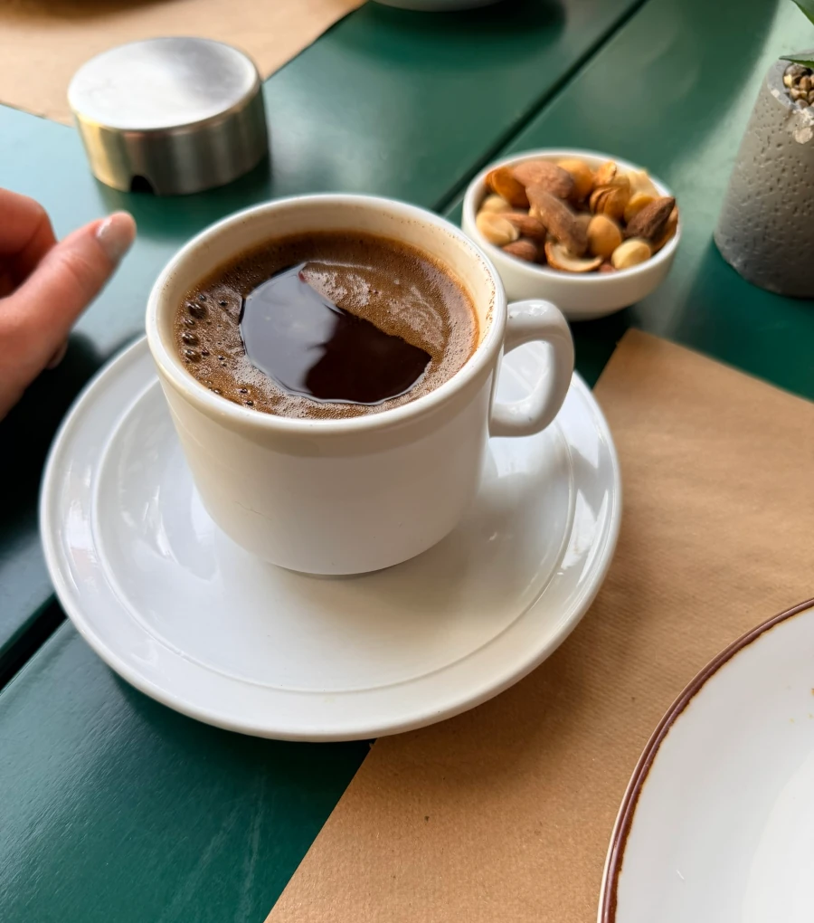 Sytuację uratowała jedynie restauracja. Plac Saripolou, to zagłębie gastronomiczne. Trudno się zdecydować, ale za nas zdecydował kot, który się wylegiwał przy jednej z restauracji. Okazało się, że można tam spróbować libańskiej kawy, którą zaproponował wystraszony kelner. W dobie wszechobecnej Lavazzy z ekspresu przepraszał, że nie ma takiej w ofercie. Nie wyglądał na przekonanego, że chętnie spróbujemy czegoś innego. W końcu ekspres mamy w domu. Do zamówionego dania i kawy otrzymaliśmy nieśmiało podaną przystawkę i owoce na deser – wszystko to gratis.