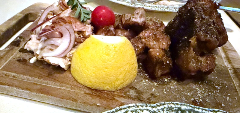Prognoza pogody nie współpracowała, ale kto by się tym przejmował. Po dotarciu do mieszkania należało wypuścić się na rekonesans, zakupy i karmienie. W tym czasie świeciło słońce, lał deszcz i nie było nudy. Po wstępnym rozpoznaniu postanowiliśmy pozbyć się nieco pieniędzy i spróbować lokalnego meze. Wszyscy zachwalali Agora Tavern dlatego się tam udaliśmy. Powitał nas kelner, pytając czy na pewno wiemy gdzie przyszliśmy, bo tu nie ma menu. Jest tylko jedna pozycja – meze mięsne bądź rybne.