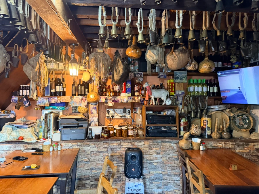 Jest tam jednak jedno „żywe” miejsce. To rodzinna tawerna, gdzie można zamówić lokalne, domowe jedzenie. Wystrój, trzeba przyznać, że bardzo klimatyczny…