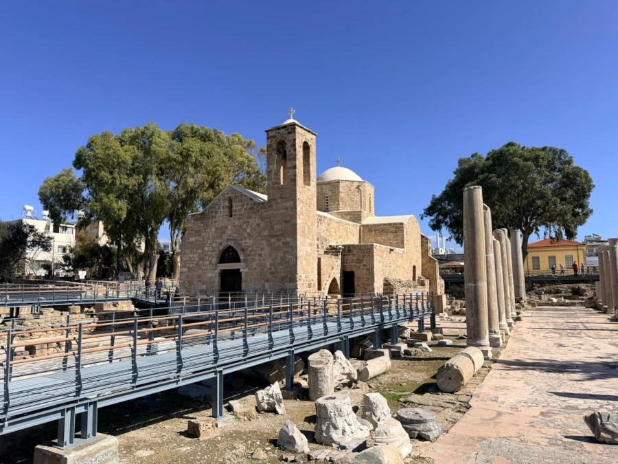 Z lokalnych zabytków odwiedziliśmy jeszcze Kościół Panagia Chrysopolitissa, gdzie mszę odprawia Azjata mówiący trochę po polsku, ale nie na tyle, aby wygłosić kazanie. Wszystko było zatem angielsko-polskie. Przy okazji można podziwiać stanowisko archeologiczne, które – standardowo na Cyprze – nie przeszkadza w swobodnym poruszaniu się tam mieszkańców czy turystów.